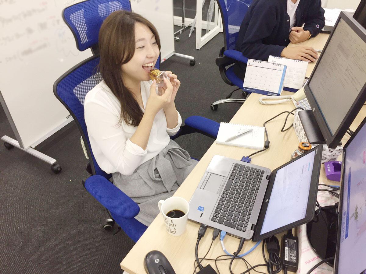 こちらは、入会前のカスタマーサポートを担当している小田(27歳)!ちょっと一息休憩中^^