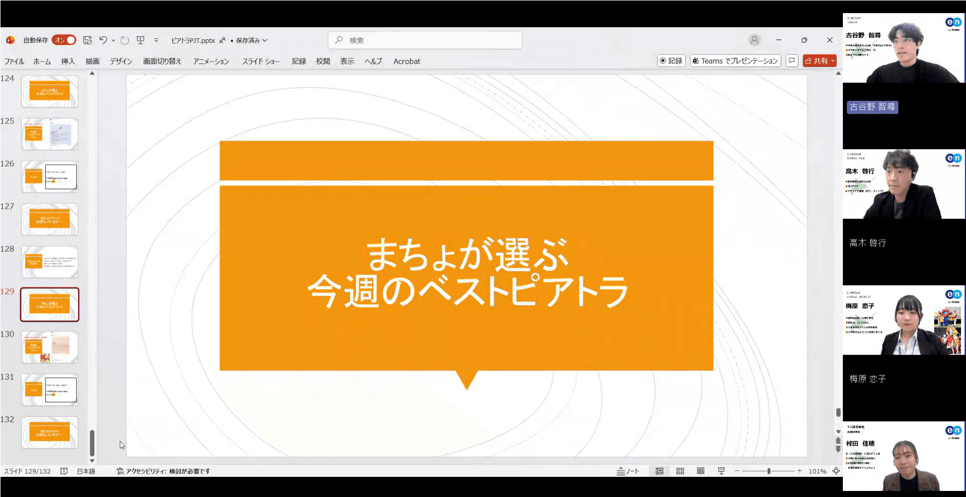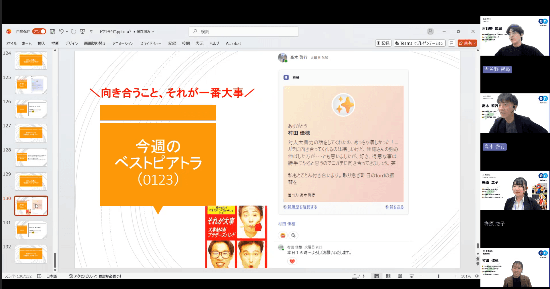 そして毎週金曜日のG夕礼では、PJTメンバーの古谷野さんが独断と偏見で