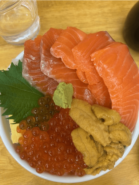海鮮丼、焼き魚、カニ、ホタテ、イクラ…もう、**海の宝石箱や〜!**状態。