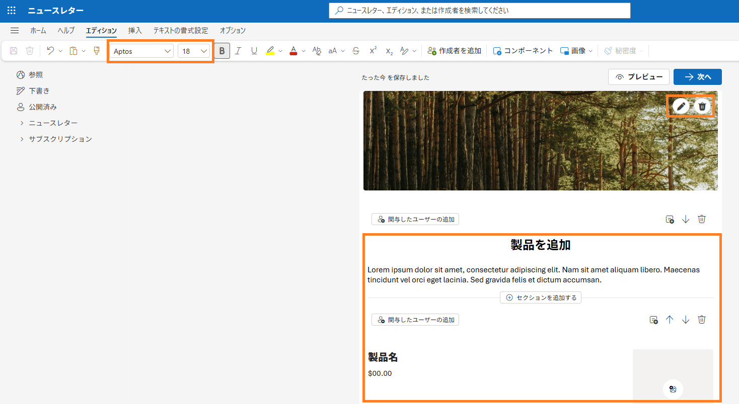 Outlook のニュースレターは、更新、レポート、お知らせなどの構造化されたプロフェッショナルなメールを Outlook 内から迅速かつ簡単に作成して送信するのに役立ちます。 この機能を使用すると、勢いを高め、チームに情報を提供し、エンゲージメントを維持できます。