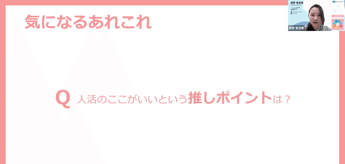 では続いて「人活の推しポイント」をぜひ教えてください。まずは庭野さんからお願いします。