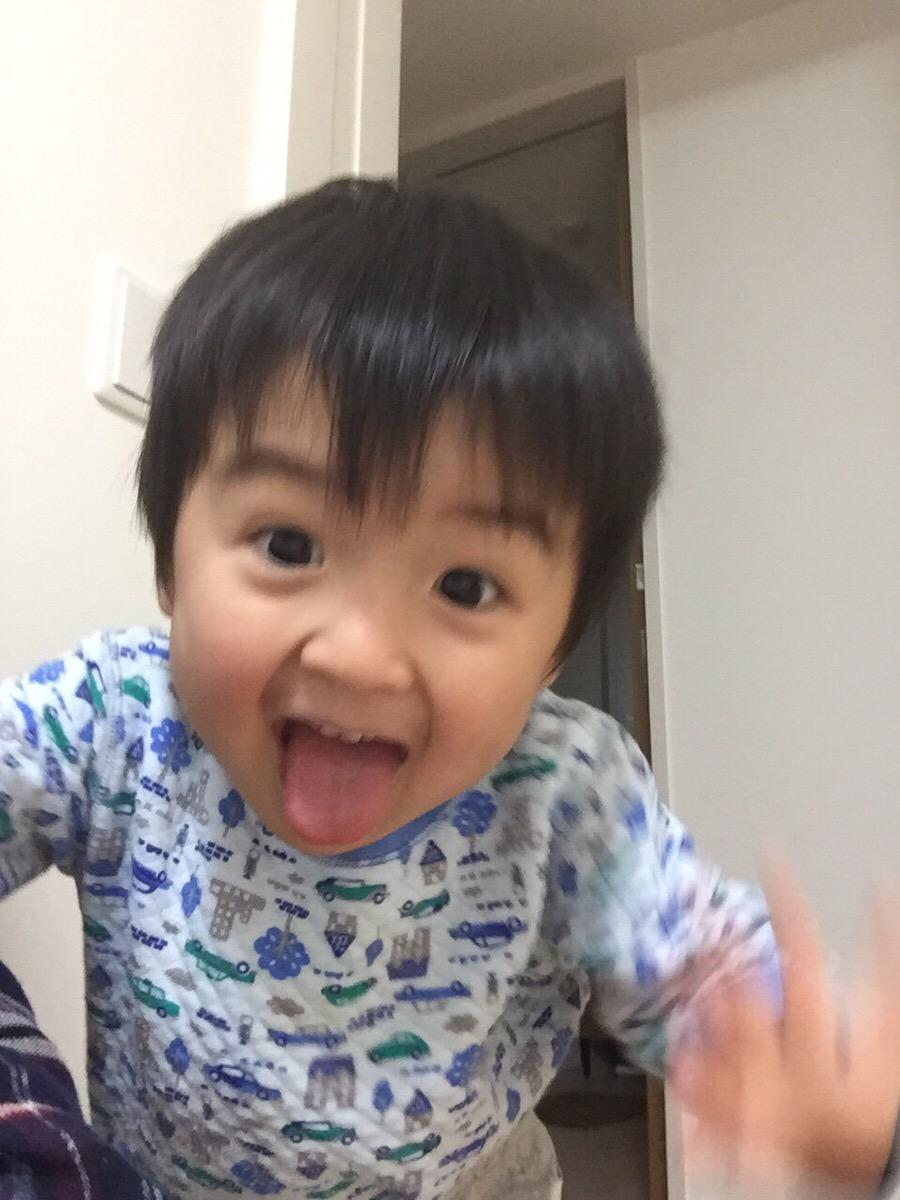シュークリームを見つけて、とにかくハイテンションな快翔(かいと)くん2歳。