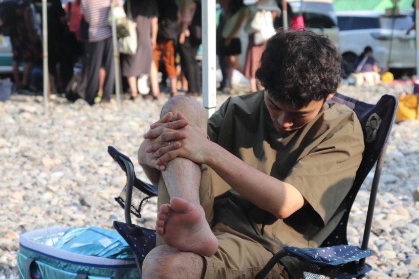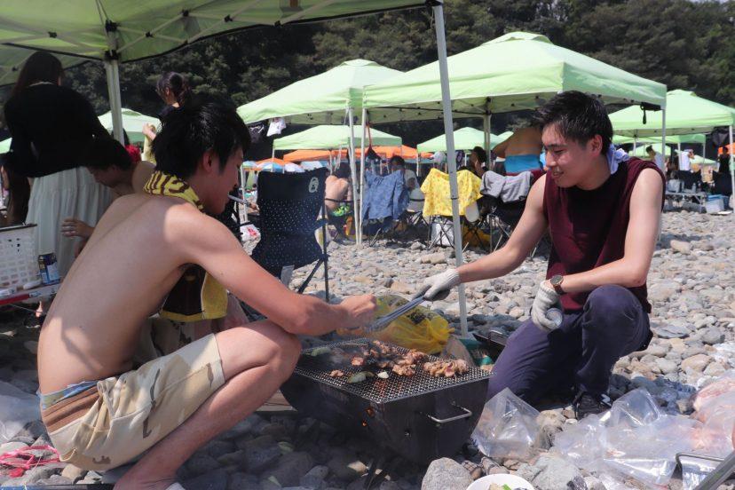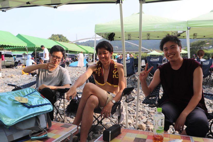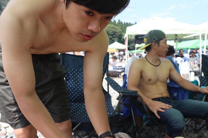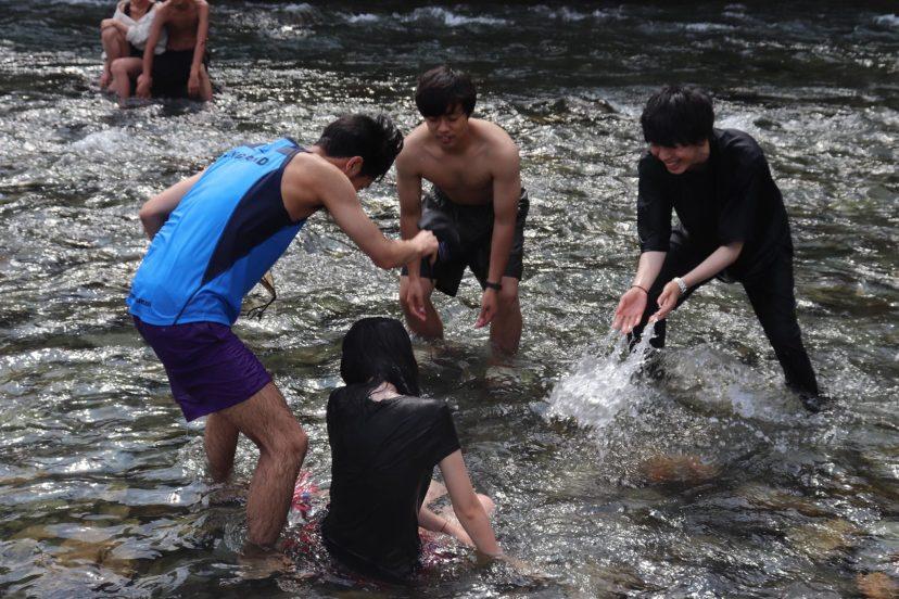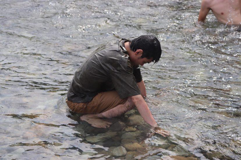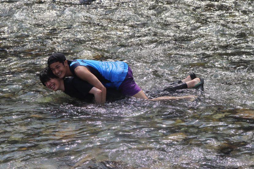 あれ、川のほうでとても大騒ぎしているメンバーがいます。。