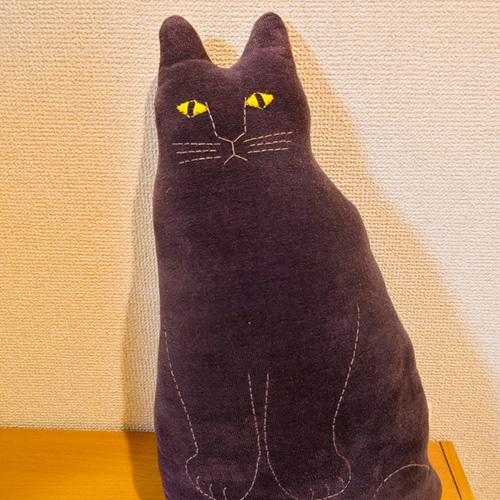 諦めきれずに ねこクッションを買いました。膝に抱えて仕事してます。