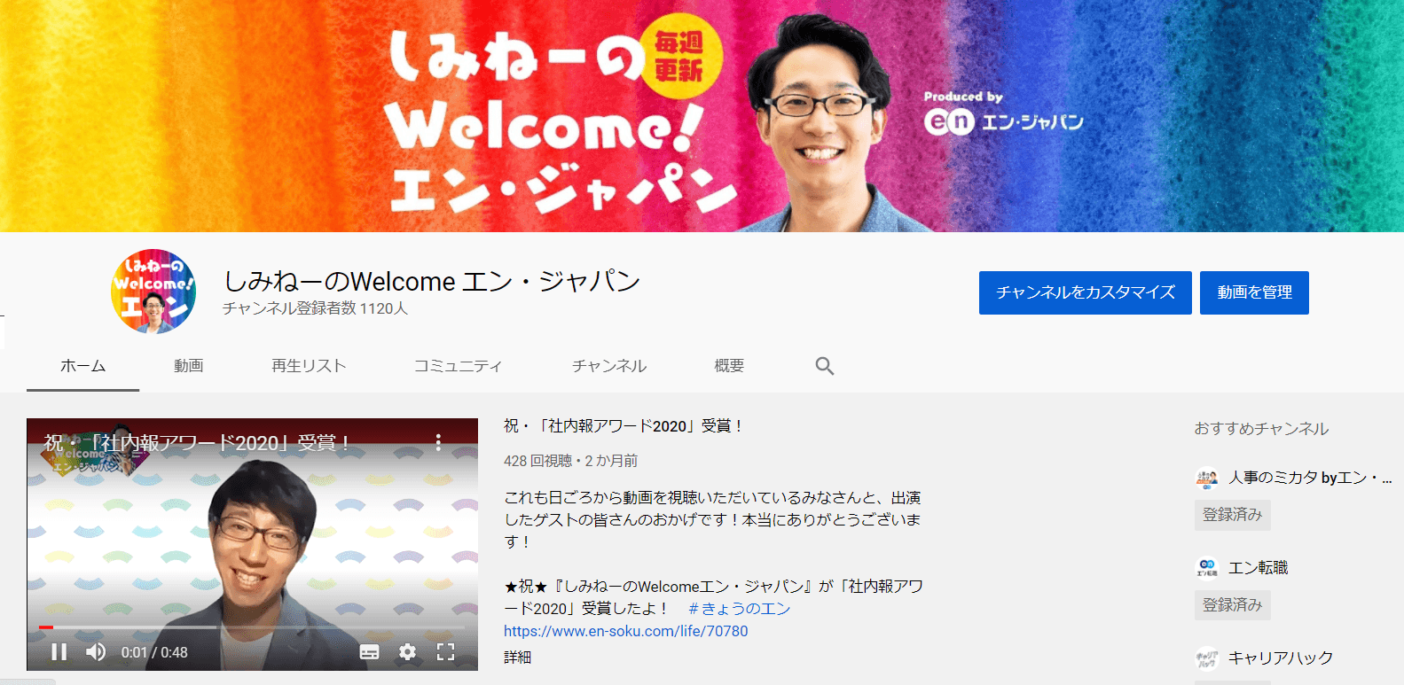 先週1周年記念の動画を公開した、『しみねーのWelcomeエン・ジャパン』ですが
