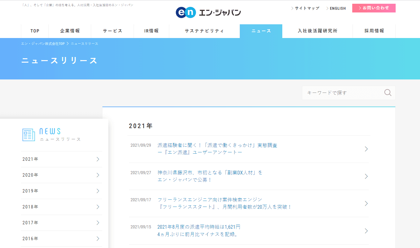 エン・ジャパン公式サイト(コーポレートサイト):https://corp.en-japan.com/