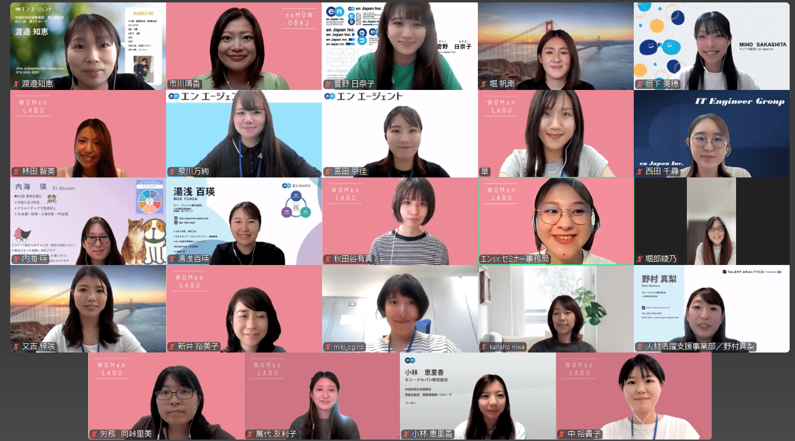 時短勤務で働いているママ社員に働き方やプライベートとの両立など、気になることを質問できる場ということで、約20名の方に参加いただきました!同じように時短で働いている方もいれば、これからライフイベントを迎える若手女性社員に多数参加いただきました!