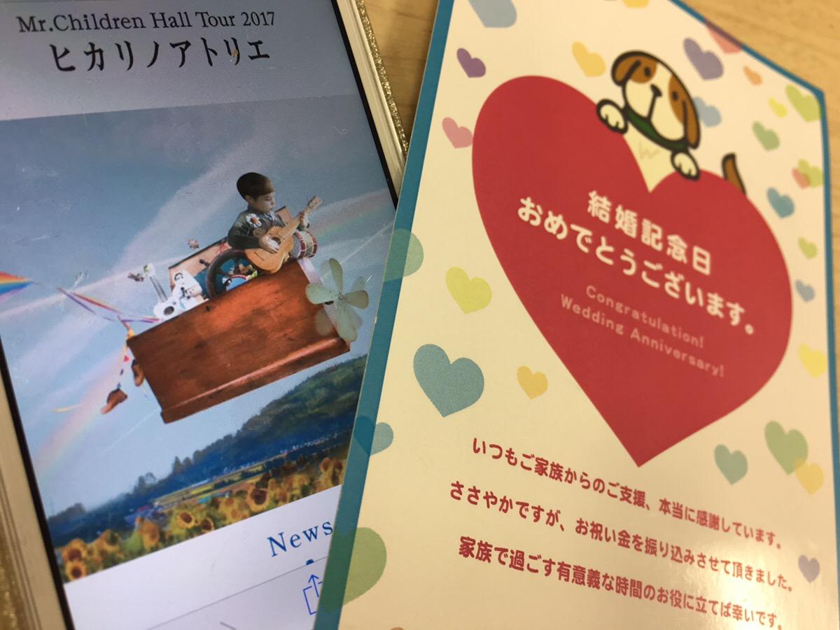 当社には「結婚記念日お祝い金」制度なるものがあります^^毎年結婚記念日(入籍日)にこんなかわいいハガキと、お祝い金として20,000円が振り込まれるんです♪