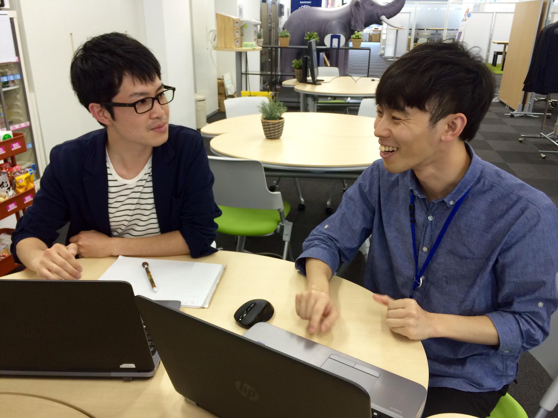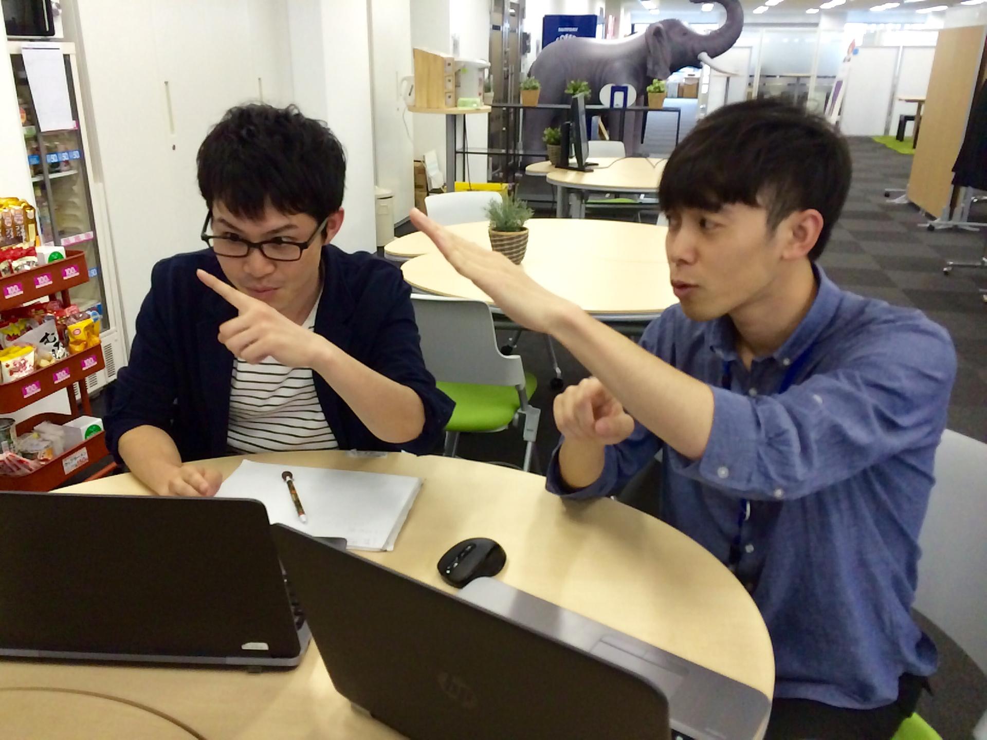 隣で別の打ち合わせをしていた男性社員2名を発見。