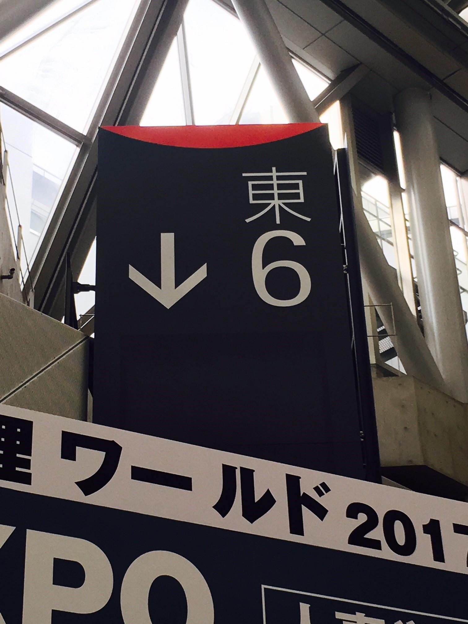 ①東京ビックサイトに到着!(りんかい線国際展示場駅から10分、ゆりかもめ国際展示場正門前から1分) ②入り口から「東」の看板を見つけ、進む。HR EXPOは「東6」