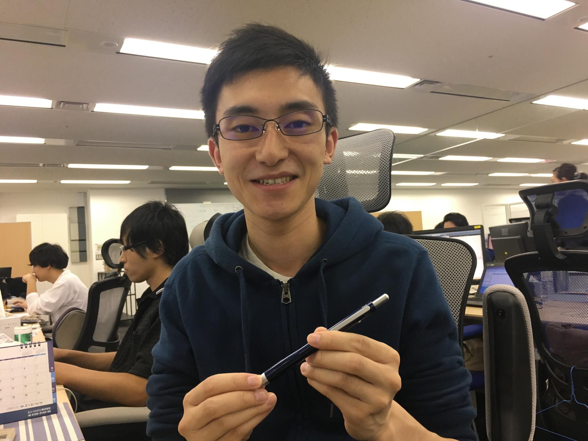 「ぼくもいいペンありますよ」と自らハードルをあげてきた、同じチームのまっさん。なんかかっこいい鉛筆。
