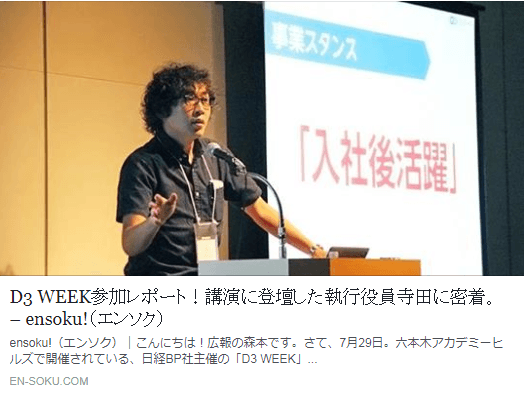私は、寺田さんの新人時代のお話が特に面白く印象的でした。ウェブプロデューサーをやりたかったのに「営業をやれ」と言われ、「じゃあ辞めます」と当時の役員に言ったというお話…驚きました。