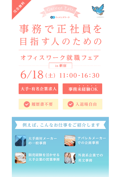 先日6/18(土)に、正社員で事務職に就きたい女性のための就職フェアを開催しました!