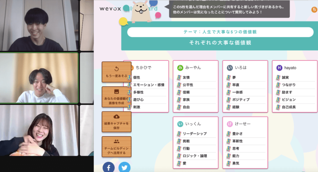 終了後も、peer-trustで「これから頑張ろう~!」「盛り上げてくれてありがとう!」と送りあっている様子を見て微笑ましい気持ちです。(笑)