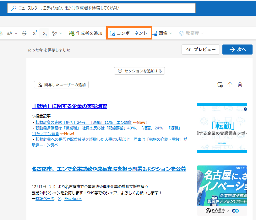 いつも全社に向けて広報から"メール"をお送りしているのですが、先日、Outlookの「ニュースレター」という機能を教えていただきました。