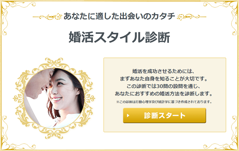 まずは目の前の記事を読んでいるアナタも、『婚活スタイル診断』を!!
