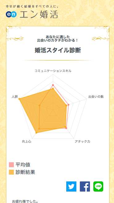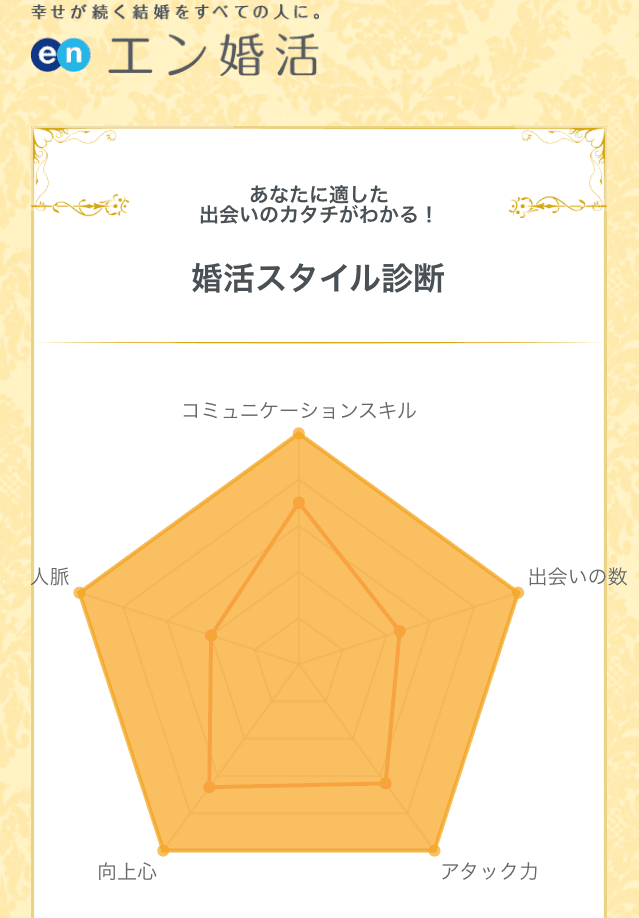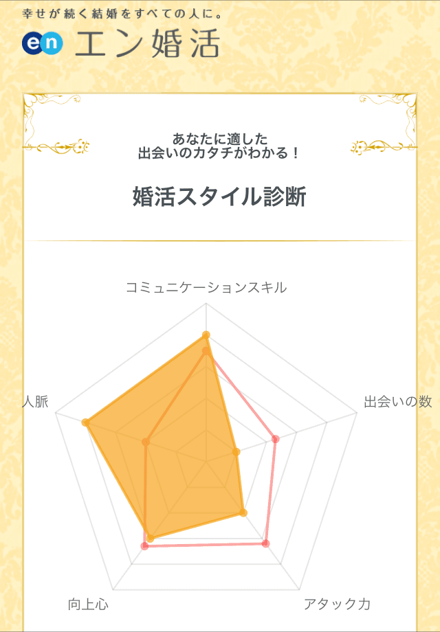 お試しはこちら→『婚活スタイル診断』https://activitycheck.en-konkatsu.com/ ※エン・ジャパングループの皆さんで試したい方は、一般ユーザーと判別するため、「社用メールアドレス」で登録してください。