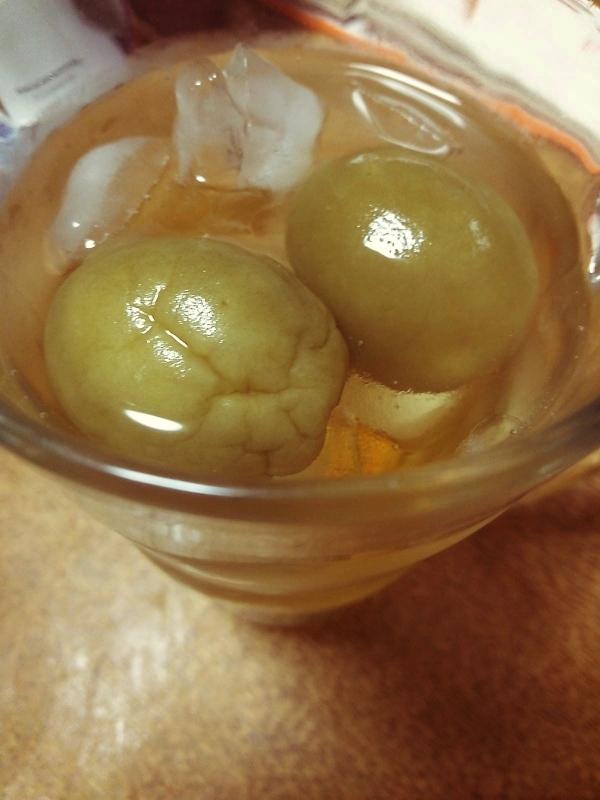 ブランデーで漬けた梅酒です。カロリーは高いですがホワイトリカーで漬けるよりも
