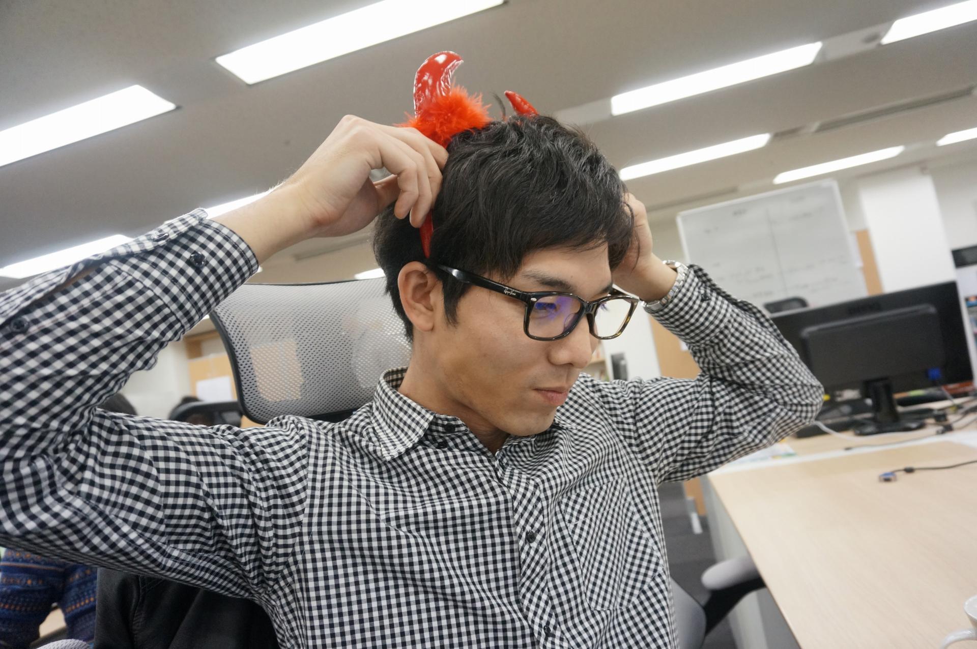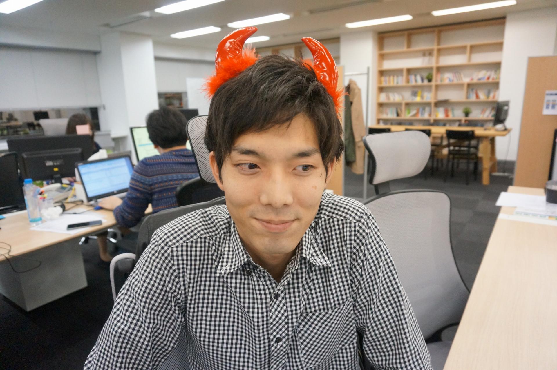 ハロウィンだし、無礼講も許されるはず!!と、このMr. エンのトレードマークでもある「青い耳」を片手に。朝から社内探索をしてきました。