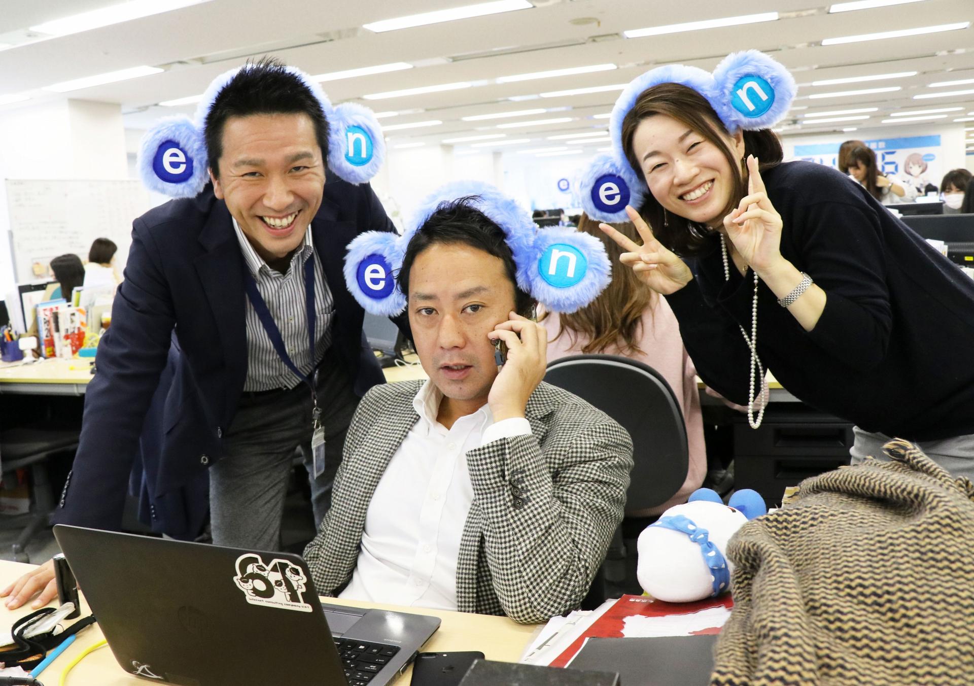 エン転職CMでお馴染みの、バカリズムさん扮する「Mr. エン」。青い耳がなんとも特徴的で、社内にもファンが多数。