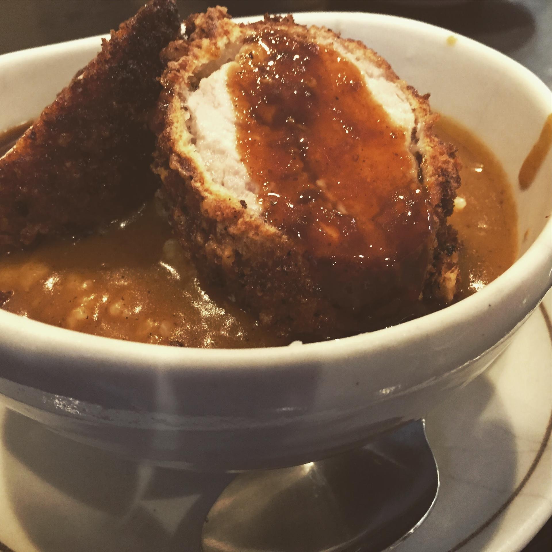 こちらはとんかつ屋さんですが、丼に入ったとんかつカレー(通称:とん丼)が絶品です。