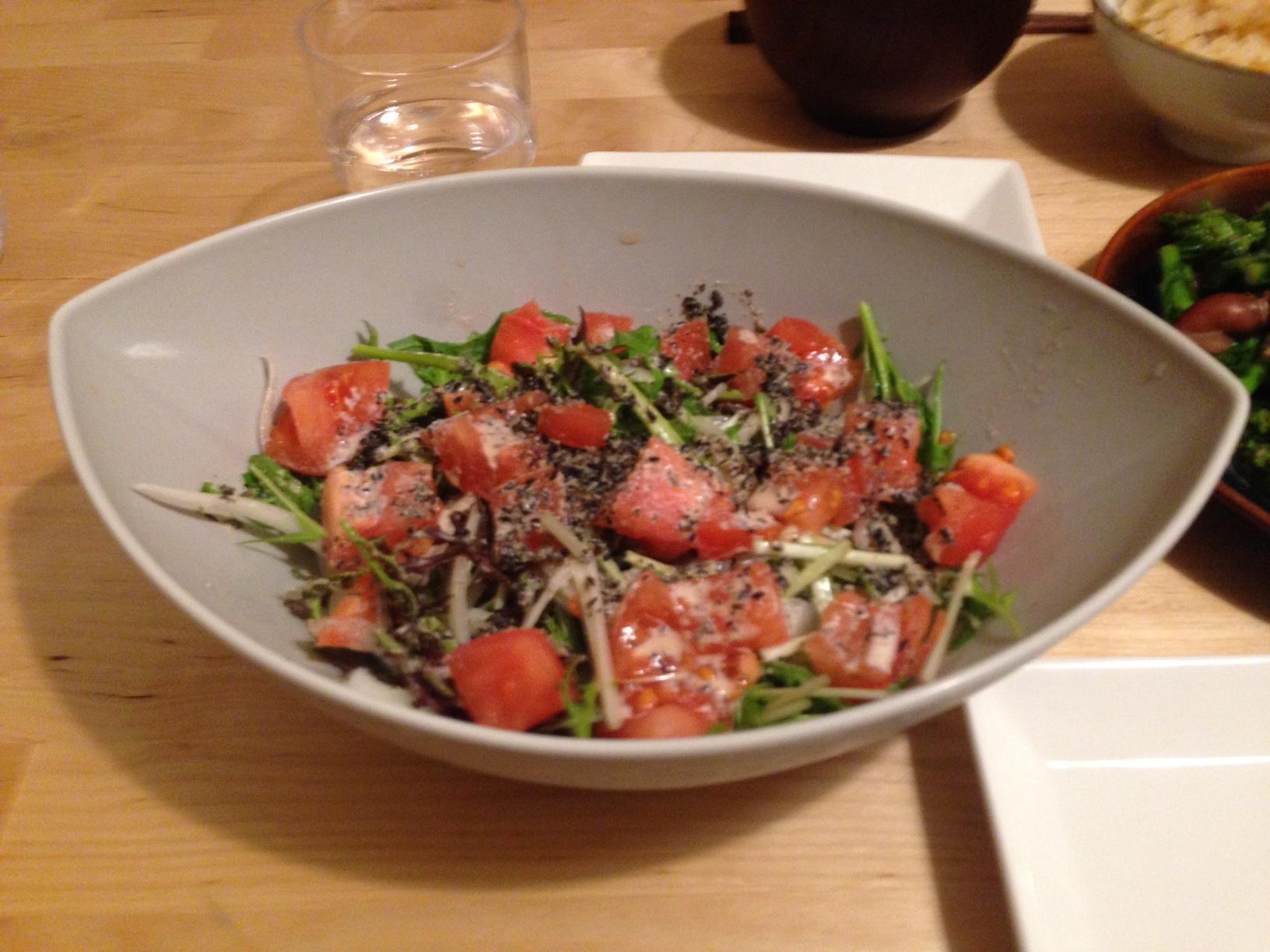 ●トマトと水菜の胡麻マヨポン酢サラダ:和えてるだけ...