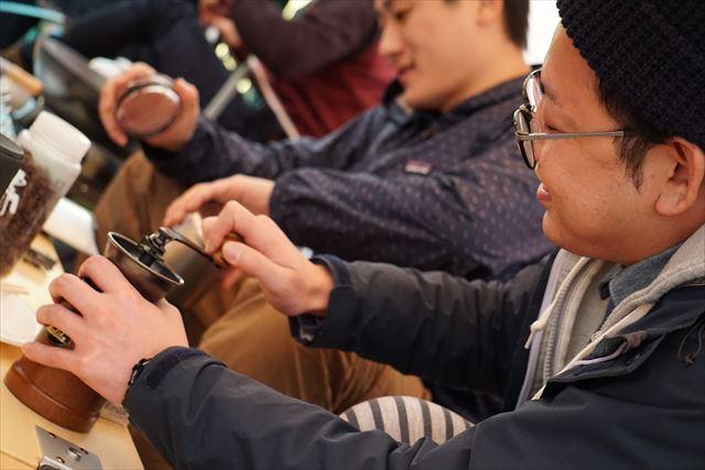 食後にはコーヒー。キャンプ好きな先輩のおかげで装備はバッチリ。至れり尽くせりです。笑