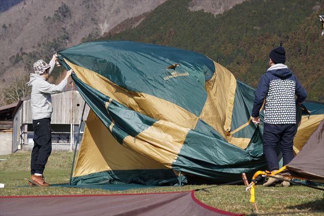 名残惜しいですが、そろそろ撤収の時間です。テントを片付け。
