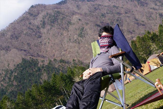 朝ごはんを済ませたら、テントについた朝露が乾くまで、のんびりと。