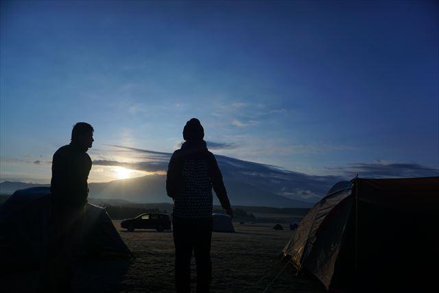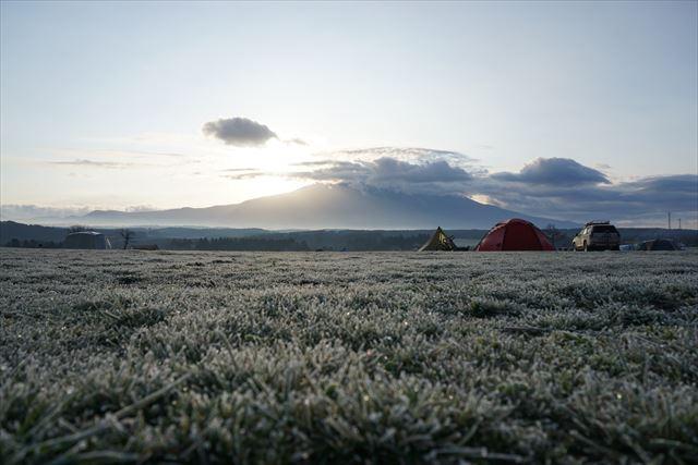 のそのそとテントを這い出ると、目の前には雄大な富士山の姿が。