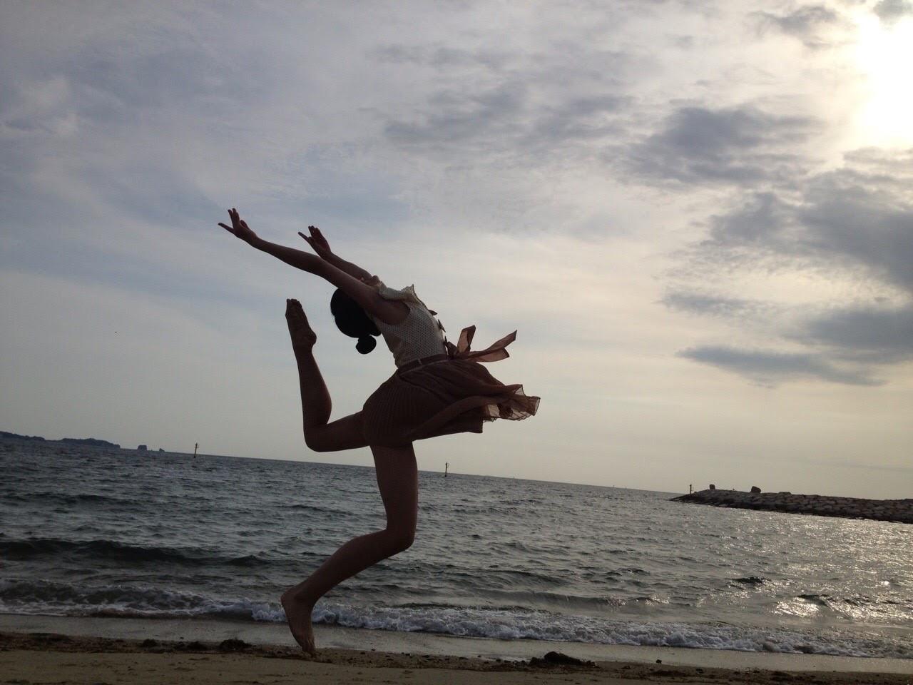 広々としているので、砂浜で新体操の技を繰り出したりすることもできるところ。笑