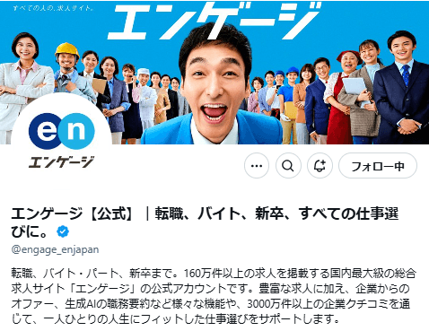 — エンゲージ【公式】|転職、バイト、新卒、すべての仕事選びに。 (@engage_enjapan) December 23, 2024