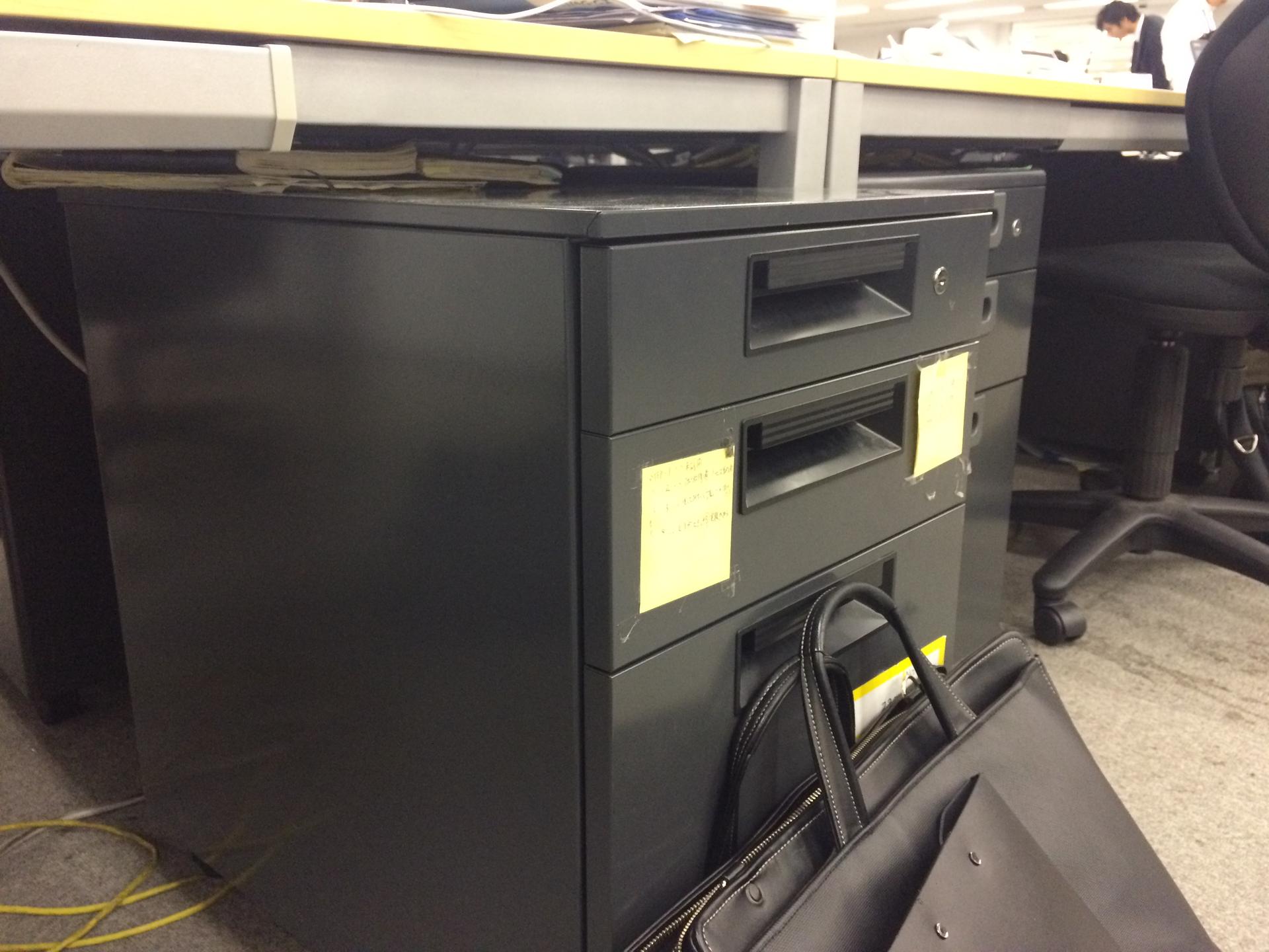 エン・ジャパンでは、(当然ですが)自分のデスクがあります。一部、フリーアドレスで業務を行なっている部署もあるのですが、自分が所属する部署は個人デスク。そしてデスクにはキャビネットが備え付けられております。