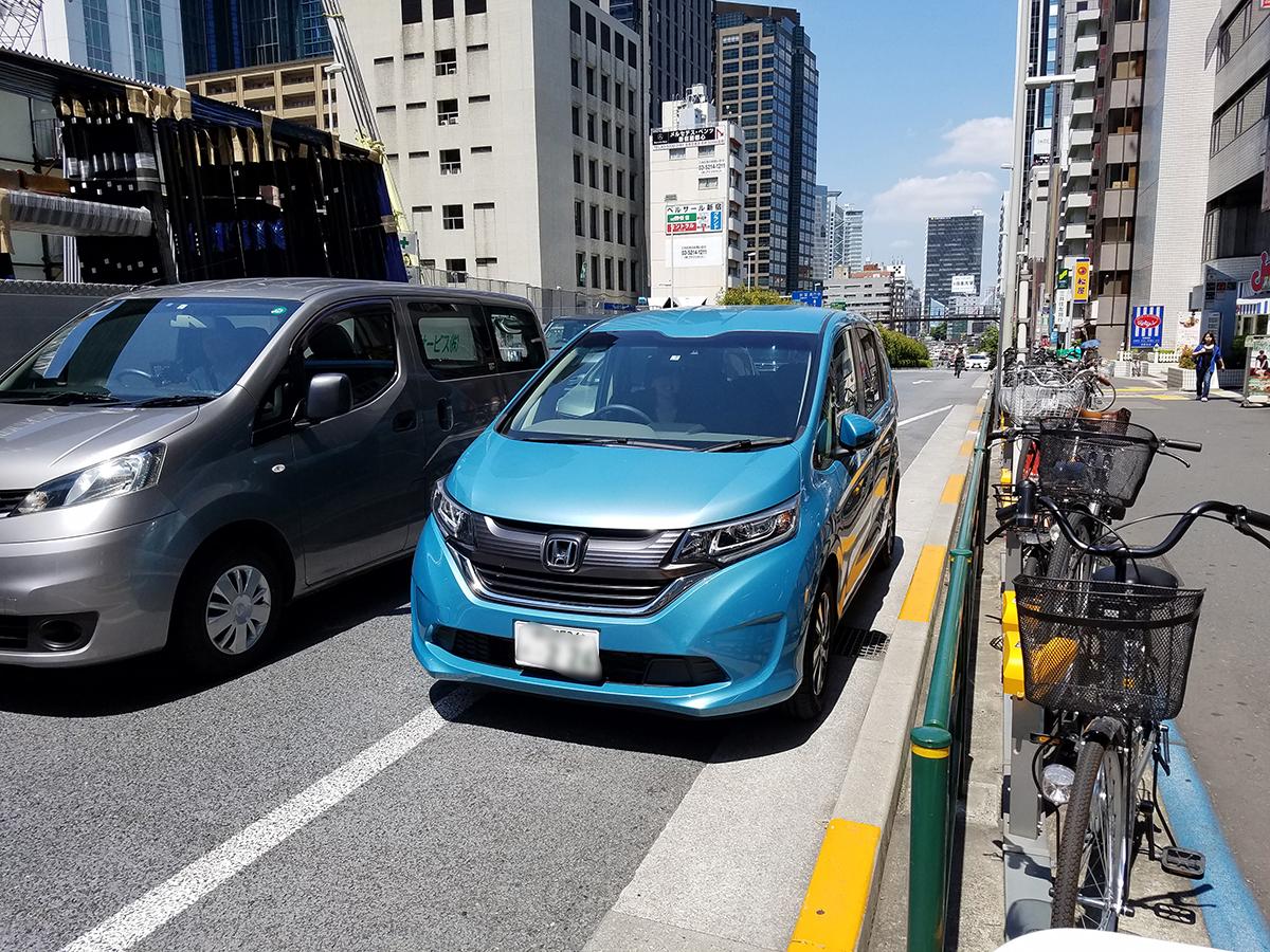 この日は久々のお出かけ日和で、道もだいぶ混雑しています。車で溢れかえる駐車場に、うろたえるオオワさん。先輩から駐車に関するアドバイスを受けています。