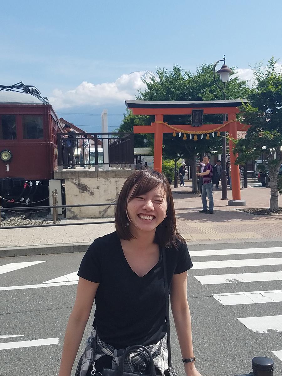 オオワさんも一安心で笑顔。この鳥居の右側に見事な富士山が見えたはずなのですが、アングルが悪く映っていません……。