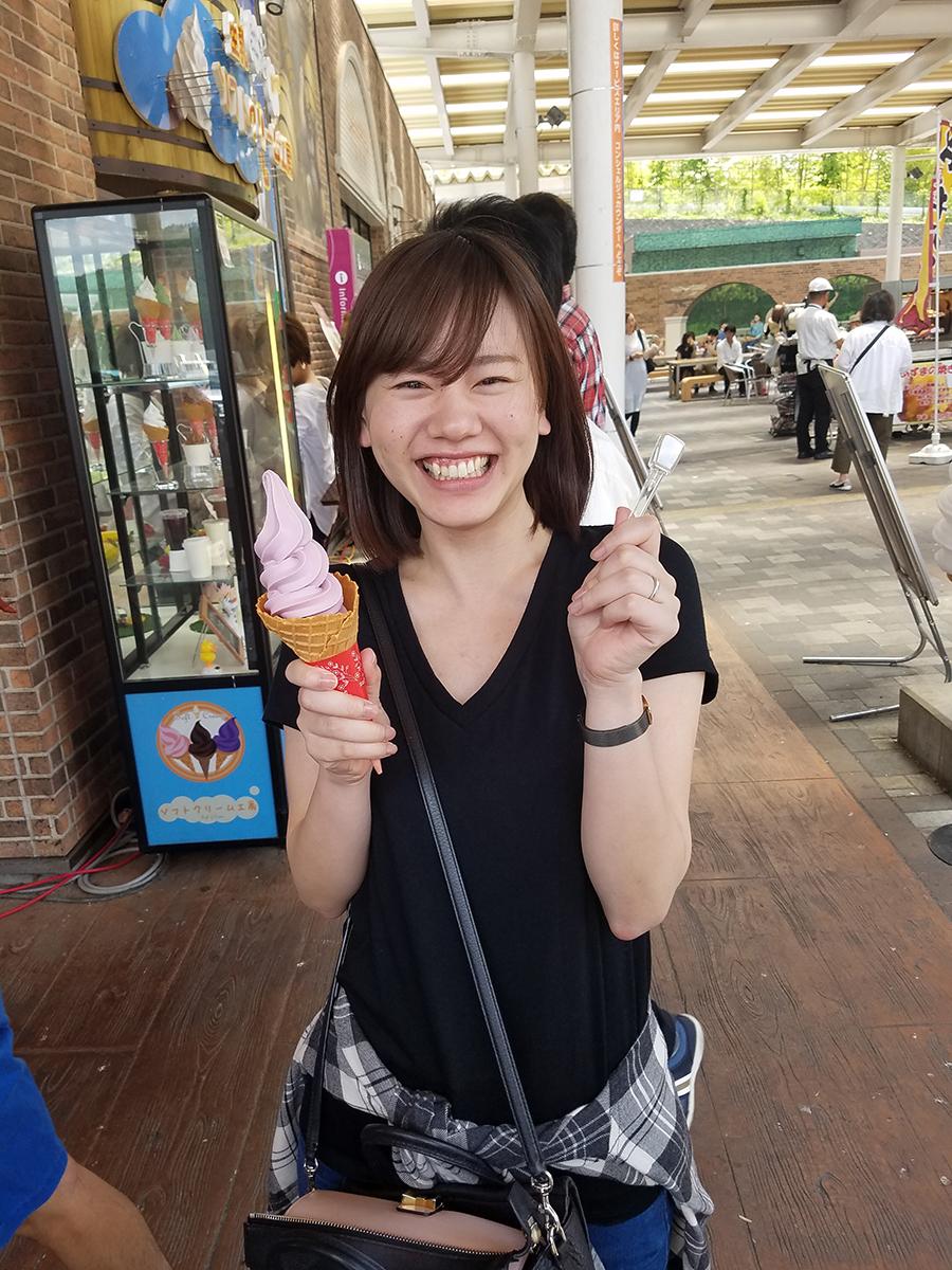 そして、名産(?)の巨峰ソフトを手にしてこの笑顔!