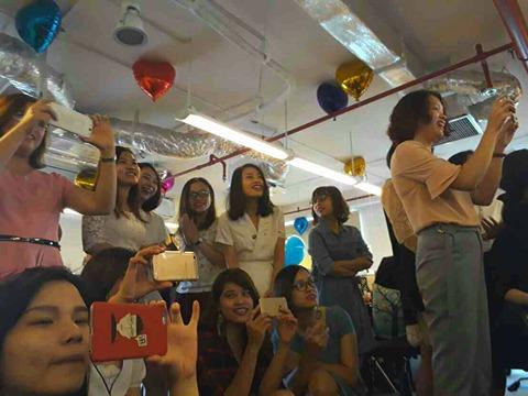 風船には、各レディーの写真(最も盛れているもの)に会社からのメッセージつき。次々と起こる歓声。