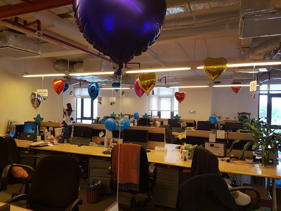 始業前のオフィス一面がラブリーに!何時から準備してくれたのでしょうか。