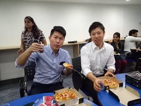 (マネージャーの兼元さんもコーラとピザにご機嫌だー♪)