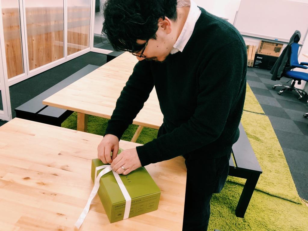 というわけで、出産のお祝いに、チームのみんなから贈り物をお渡ししました!