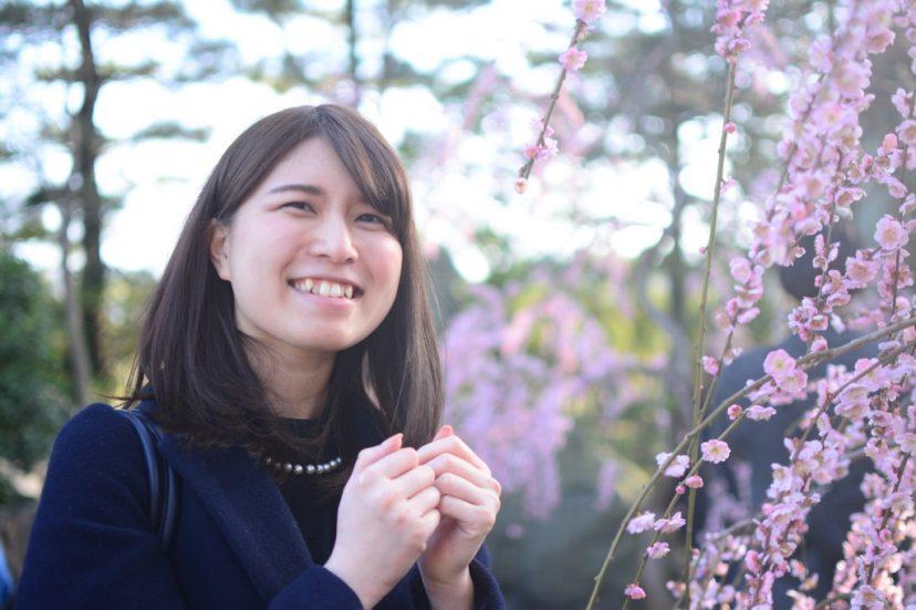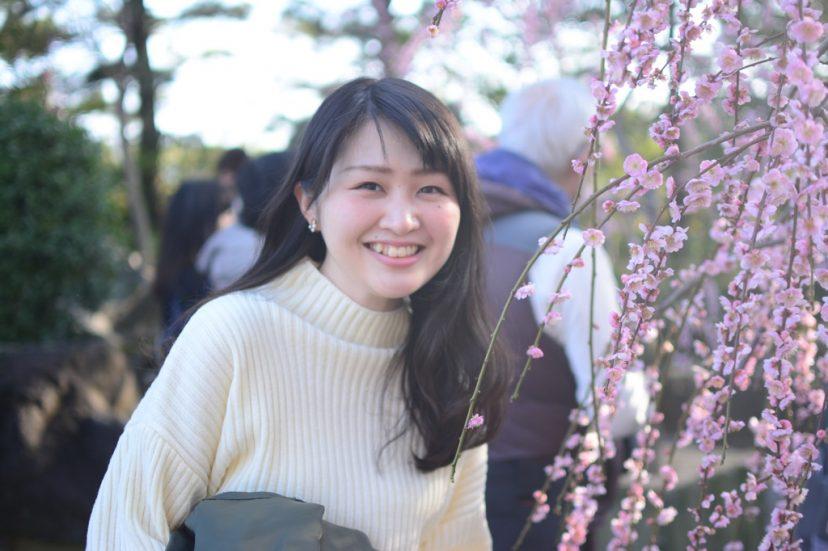 キレイな枝垂れ梅にテンションが上がり、みんな記念撮影。