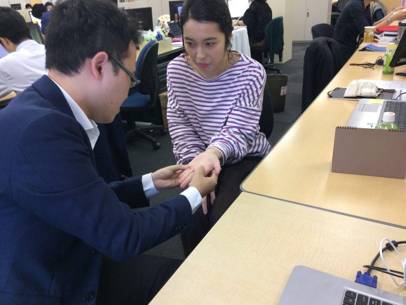 森田:はっ、そういえば、伴さん、特技が手相だったって、朝礼の自己紹介のときにも仰ってましたね?