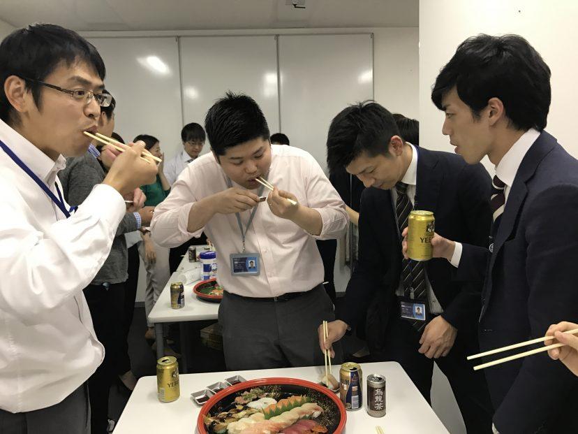 エン・ジャパンに脈々と受け継がれる文化のひとつです。月間の売上目標を達成した部署は、お寿司やビールなど好きなお食事や飲み物の発注権利をゲット。ランチタイムや就業後にみんなで成果を賞賛し合う+達成者だけのご褒美なのであります。