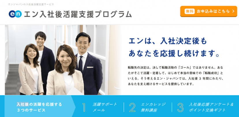 エン・ジャパンのサービスを通じて転職された方の入社後活躍を支援するサービスがあったり。