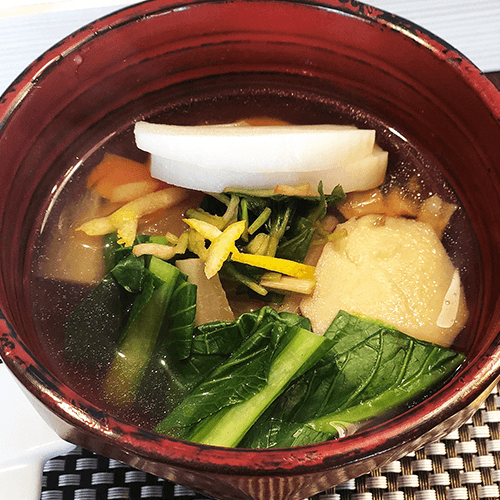 新婚ホヤホヤの後輩シンバラさんのお雑煮です。