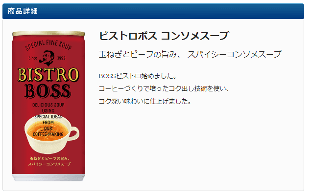 でもそんな時の強い味方があるんだそう。それが自動販売機で売ってる、あったか~い飲み物。その中でも特にお気に入りなのが、ビストロボスのコンソメスープだそうで。