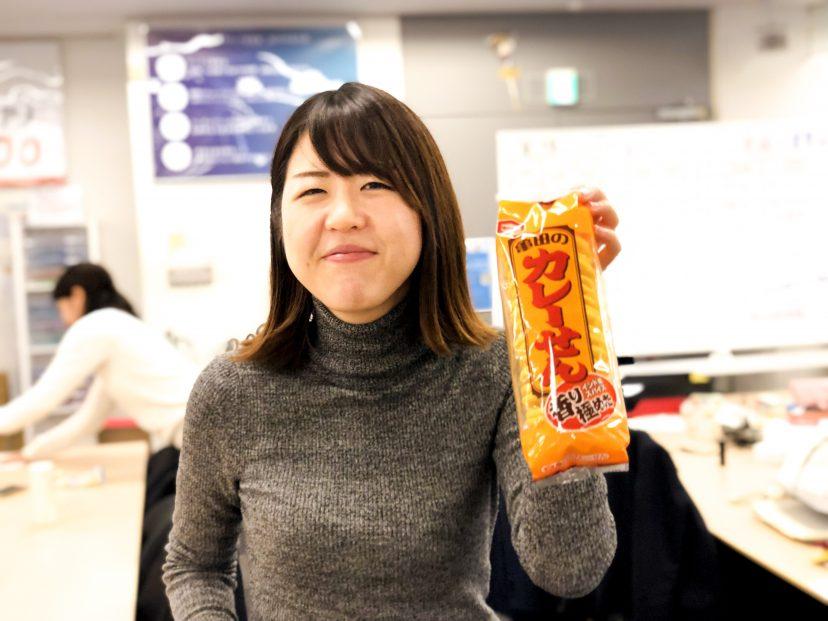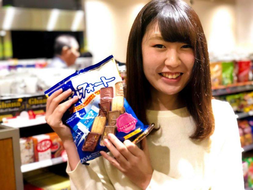 アルフォートを選ぶみこまちゃん。(入社三年目/特技はダジャレ)