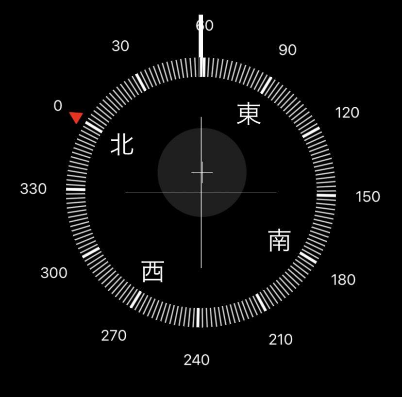 今年の方角は東北東ということで、あいふぉんのコンパスで探します