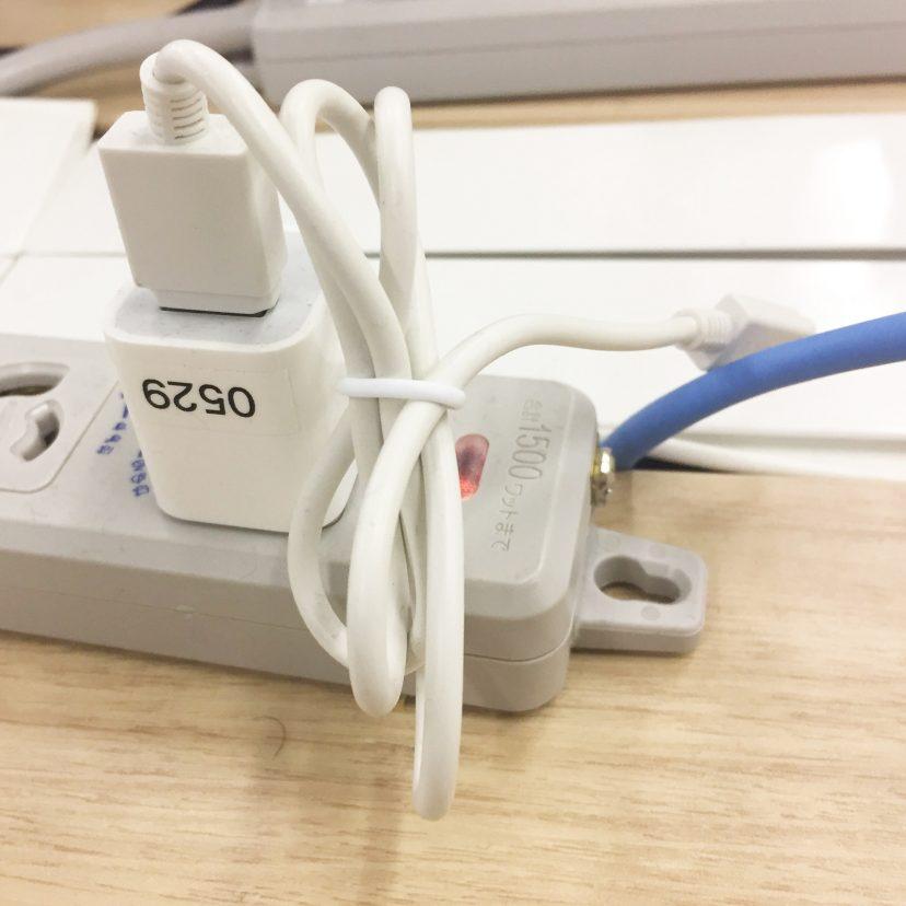 唯一あったのは、スマホの充電器のみ。きちんと束ねられていました。見習います。
