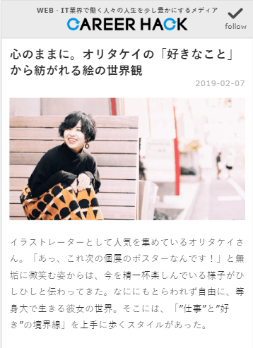 私は最近、CAREER HACKというメディアで記事を書いたのですが、すごくおもしろかったです!